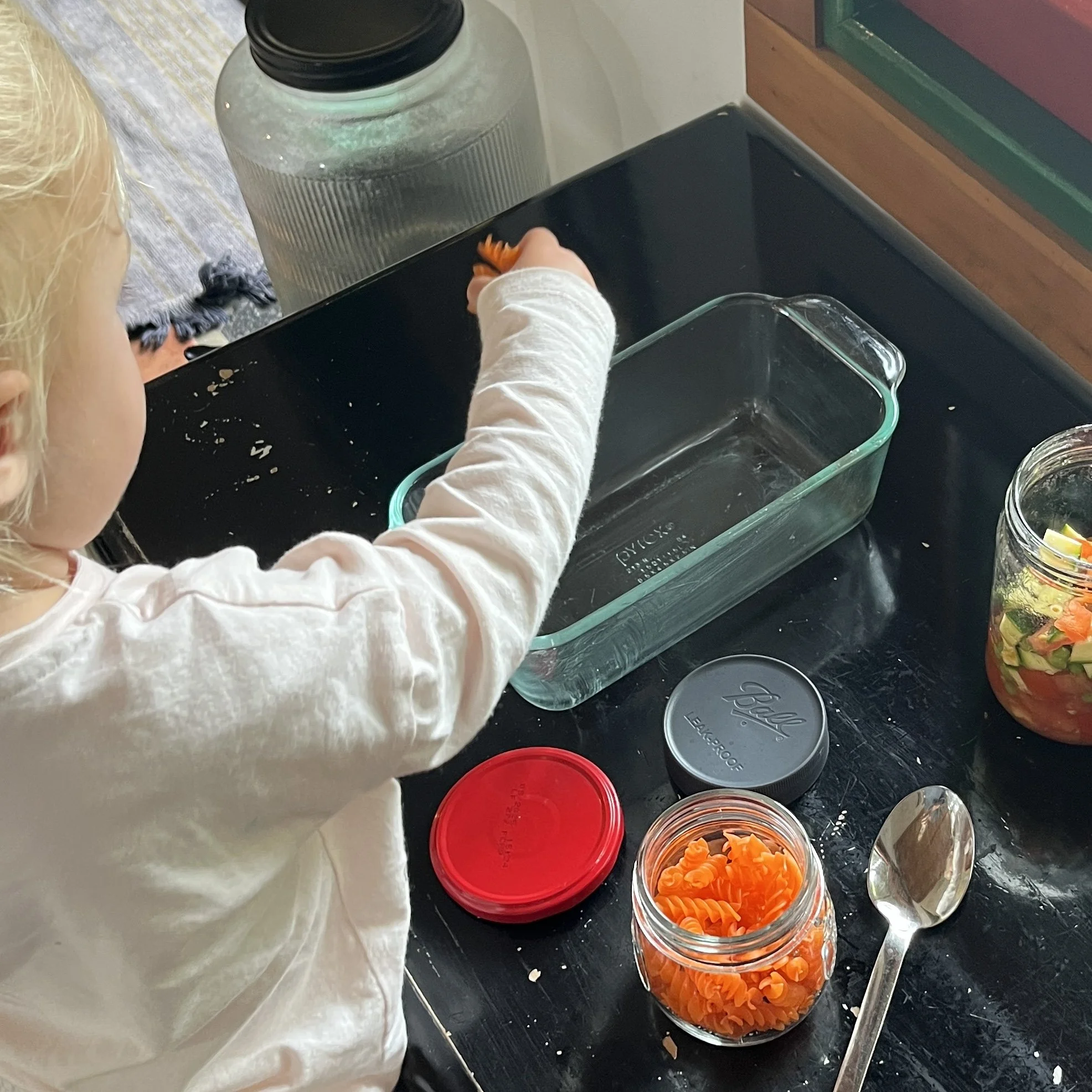 Many of our experiences have a level of pre-preparation so they become possible for involving children. We need to not be deterred or overwhelmed by thoughts of a toddler baking a cake from scratch. Think about the aspects they can be involved in and make that possible.
