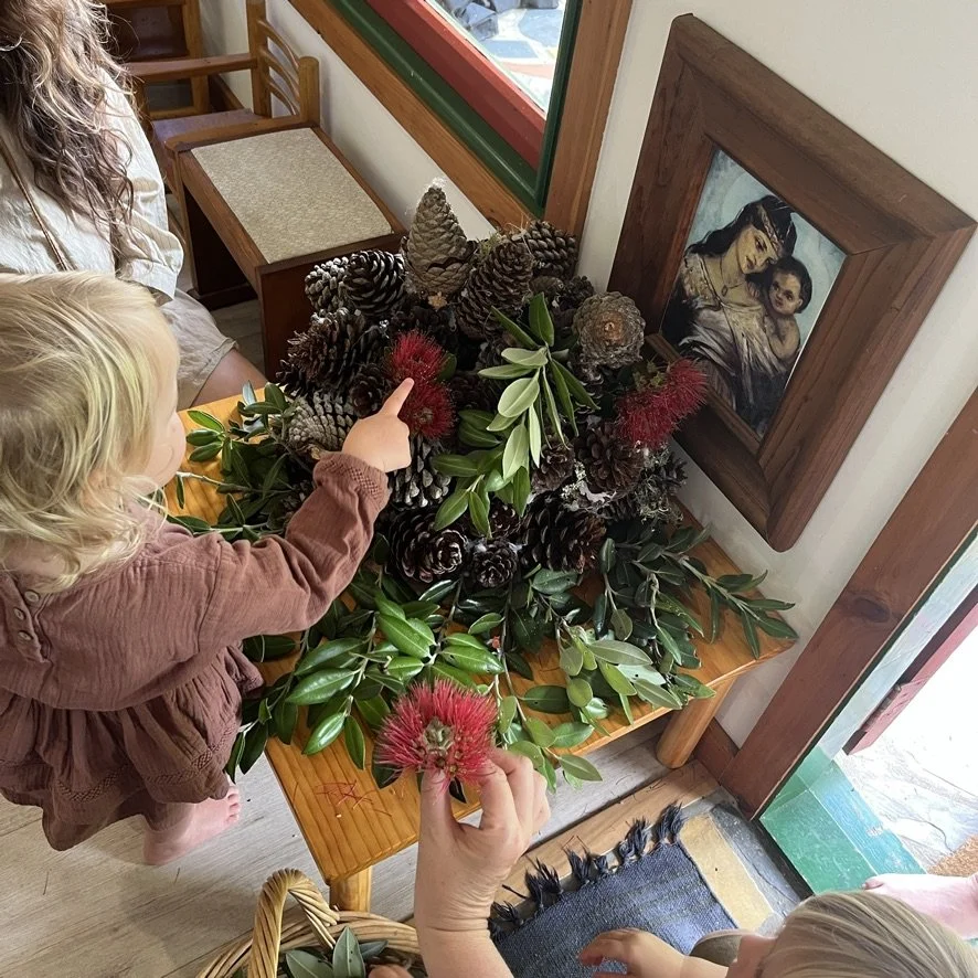 We will have a Christmas tree for children to decorate. It will arrive early December for our end of year celebration (last year it was made from pinecones gathered from a local pine forest and we provided basket containing sprigs of pōhutukawa as the decorations) - it will be a sensorial experience and children will be free to decorate and rearrange it as they wish.